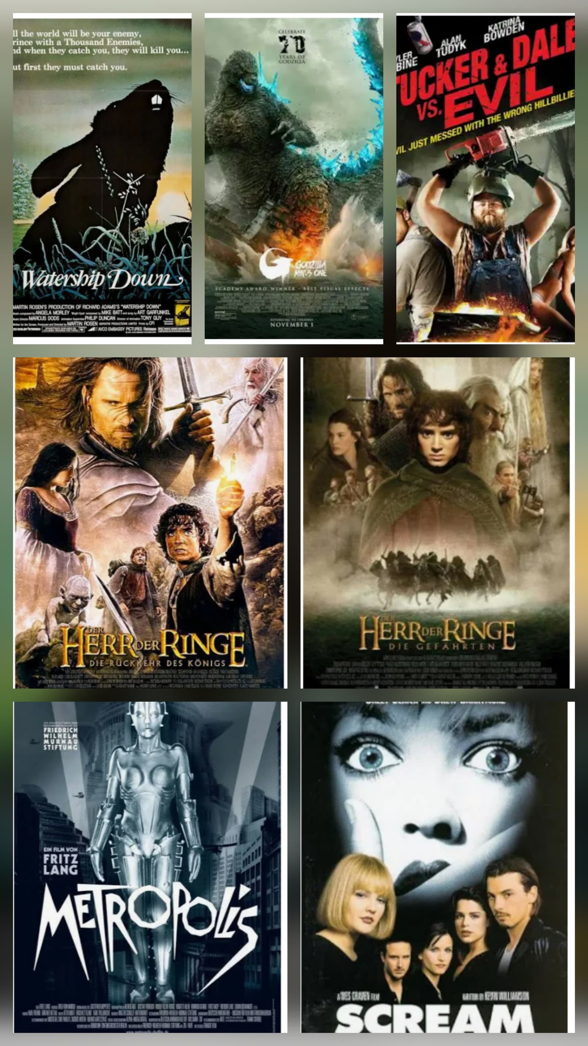 Hier mal mein Versuch meine persönlichen 50 besten Filme aller Zeiten auf zu Listen (leider nur querbeet , da technisch untalentiert ) :