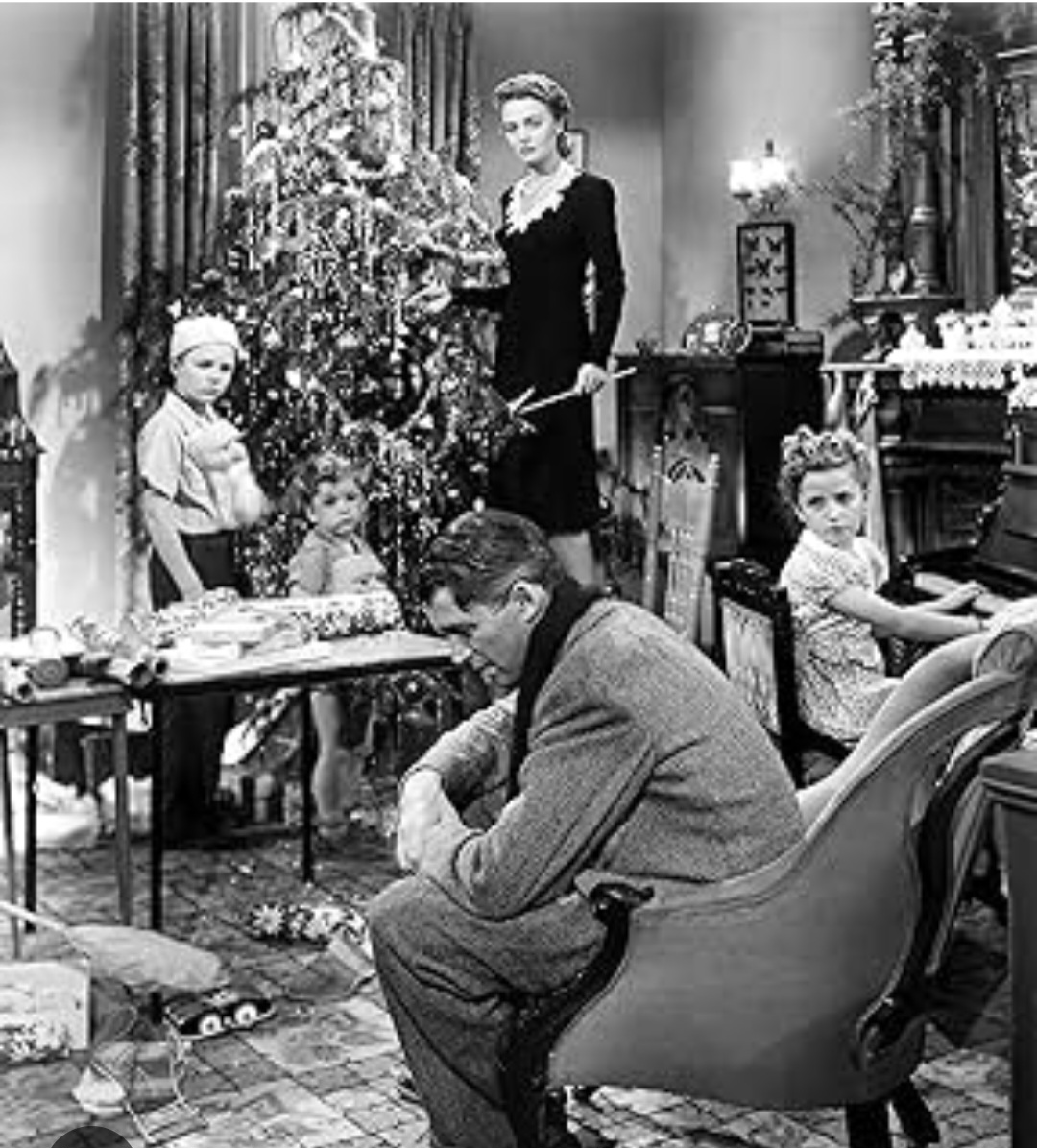 Oh, das kommt mir super bekannt vor. Ich krame gerade schon die ganze Zeit im Kopf. Vor allem der zweite Mann von links. Finn ist aufgefallen, dass Geschenke auf dem Tisch liegen. Es könnte also ein Weihnachtsfilm sein. Ich müsste noch länger drüber nachdenken. Vielleicht könnte es morgen noch einen Hinweis geben.