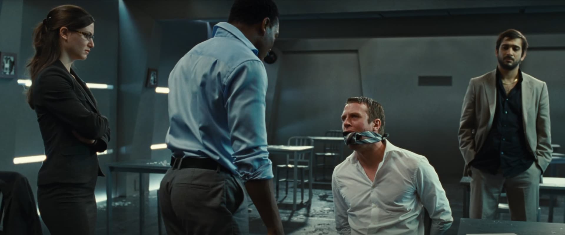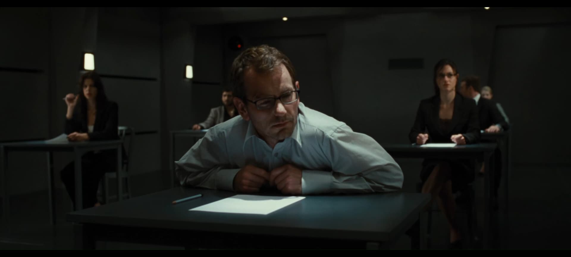 Ich weiß nicht weiter. Es sieht für mich durch die Anordnung im Raum und das Equipment aus wie eine Prüfungssituation. Ich kenne aber keinen solchen Film und müsste es durch Google herausfinden.